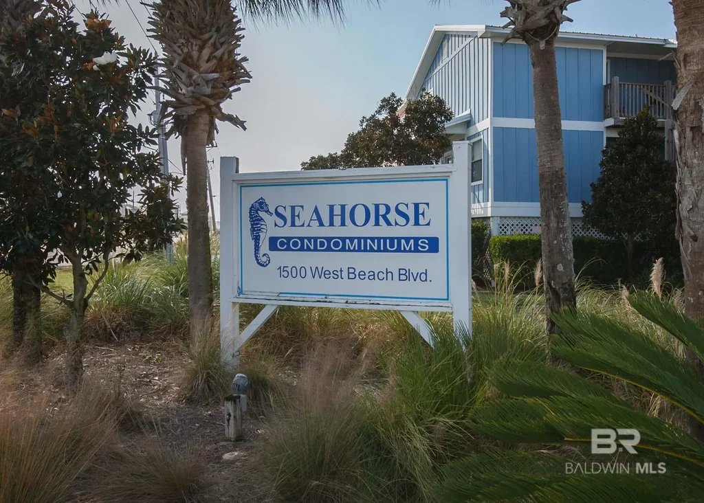 Nestled between the Gulf of Mexico and Little Lagoon, Sea Horse is a secret gem on West Beach in Gulf Shores. Sit on the front porch and watch and listen to the Gulf. The walk to the gentle lapping waves of the Gulf of Mexico is a few steps away from the 13th Ave public access. This area of West Beach has smaller crowds and is still convenient to restaurants and entertainment. Great fishing is steps away at Little Lagoon Park and pass. Paddleboard or kayak from the public lagoon access around the corner or jump on the bike path and ride all the way to Gulf State Park. The bedrooms have a western view that includes the Gulf and Little Lagoon with evening sunsets. The bright, relaxing unit has updates throughout with the following replaced in 2022; HVAC (inside and outside units),Hot water heater, Refrigerator , Washer and dryer, Flooring, Complete front door and storm door, Bathroom vanity, All light fixtures, Ceiling fans, Updated wall outlets, Window treatments, All Furniture (beds, mattresses, LR furniture etc.). The complex recently replaced the roof, stairs, hurricane straps, siding and paint. Buyer to verify all information during due diligence. Buyer to verify all information during due diligence.