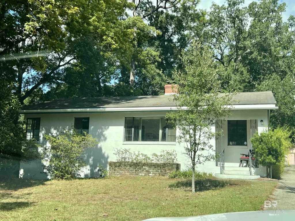 This adorable Fruit & Nut District cinderblock cottage is located just steps away from Mobile Bay and situated on a large 60’ x 170’ lot (per Survey). 3 BR/ 2 BA single story home has loads of possibilities with original hardwood flooring and a charming woodburning fireplace. Detached Double Garage. Home is being sold AS IS. Bring offers! Buyer to verify all information during due diligence.