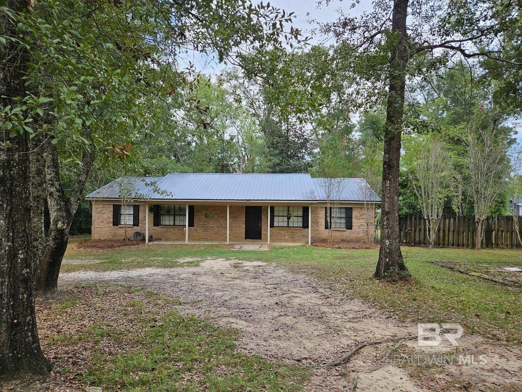 This is a Coming Soon Listing. Coming Soon- Welcome to this beautiful 4-bedroom 2 bath home on 3 acres. Enjoy the welcoming front porch as you pull up in the circular driveway. Home has an open concept design with view of the Kitchen Living and Dining areas. Home features a split floor plan. This home has had several recent upgrades, new HVAC per Seller in 2024, water heater and new wood for rear deck updated flooring throughout. Metal roof was installed in 2020. Home features stainless appliances with Granite counter and Island. Enjoy a cup of coffee in the morning on the large back covered deck with a peaceful view if the private back yard or plenty of room to entertain and grill out. Plenty of room for pets to roam. Back yard has a storage building room for your extra toys like a Boat, or add additional storage if needed. Plenty of room to build a garden. Back of property features a creek. Just minutes from the 1-10 interstate and a short drive to Pensacola and Mobile. NO HOA fees. Come see this one before its gone! Buyer to verify all information during due diligence.