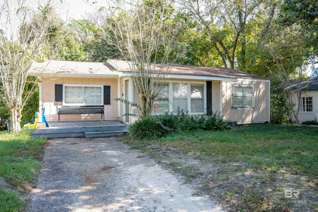 House can not be shown till after 1:00 PM on Nov. 11. This 1105 sq ft cottage is conveniently located a short walk or golf cart ride to downtown Fairhope. Visit the website, Fairhopers.com and see year round Events and Things to do in Fairhope, AL. located on Mobile Bay. The wood floors have been refinished and walls have new paint. The property is being sold "AS IS" The cottage has hardwood floors, a back deck overlooking the backyard and trees. Talk about LOCATION, LOCATION, LOCATION, you might even consider building a larger home on this site. Buyer to verify all information during due diligence.