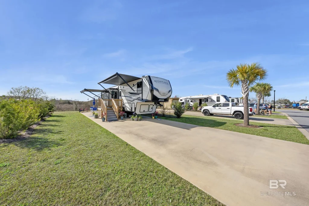Experience the best of Gulf Coast living at Lot 5 in Grand Riviera RV Resort - a premier, gated RV community where upscale amenities and relaxed coastal vibes come together seamlessly. This exceptional lot offers the ideal setting to enjoy resort-style comforts while maintaining the freedom and flexibility that make the RV lifestyle so appealing. Thoughtfully designed for comfort, connection, and convenience, this community delivers an experience far beyond the ordinary. Whether you’re envisioning weekend escapes, extended seasonal stays, or exploring investment opportunities, Lot 5 offers outstanding versatility in a prime location. Residents enjoy three pool areas, including one heated pool for year-round enjoyment, along with three recreational areas. The main recreation building features a kitchenette, while two of the rec areas include laundry facilities. All three recreation areas offer TVs, showers, bathrooms, and are maintained by a full-time cleaning staff. The community also features a pickleball court, two dog parks (with a maximum of two dogs per lot), a stocked catch-and-release fishing pond, onsite mail service, and free overflow storage for boats and trailers. The property is gated with surveillance. RVs must be 22 feet or longer and 15 years or newer, and the resort accommodates travel trailers, fifth wheels, and Class A & C motorhomes. The lot features 50 Amp hookups, 2 deeded parking spots, a dedicated golf cart space, and a motorcycle space. Owners also have the option to add a storage building and/or cabana to further personalize their outdoor space. Ideally located just minutes from OWA Parks & Resort and the white-sand beaches of Gulf Shores, you’ll enjoy walking distance to local favorites including Doc's seafood Shack, Wolf Bay Lodge restaurant, farmers market, go-karts, putt-putt, and more! This resort isn’t just a place to park - it’s an opportunity to invest in a lifestyle defined by sunshine, community, and coastal charm. Buyer to verify